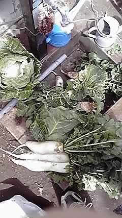 半自生の大根と、越冬したキャベツ。大根は叔母におっそわけした。迷惑だろうけど。