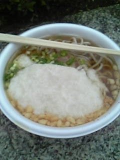 また雨。とりあえず冷たい肉蕎麦400円をくう